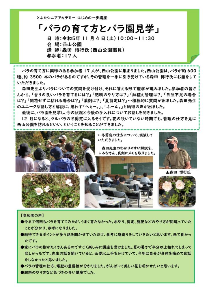 はじめの一歩講座「バラの育て方 とバラ園見学」講座風景