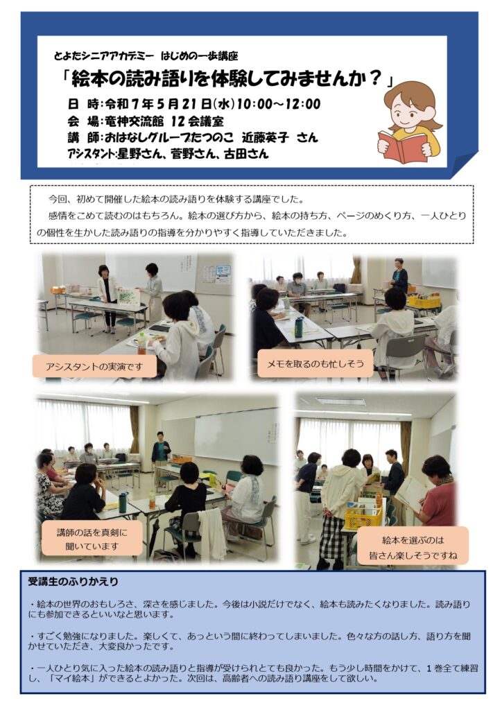 はじめの一歩講座「絵本の読み語りを体験してみませんか?」講座風景