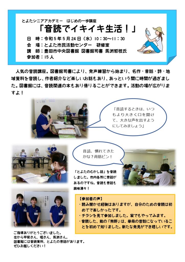はじめの一歩講座 「音読でイキイキ生活!」講座風景