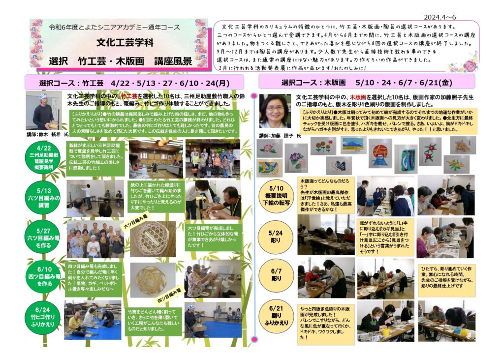 講座風景 選択 竹工芸・木版画(通年コース・文化工芸学科)