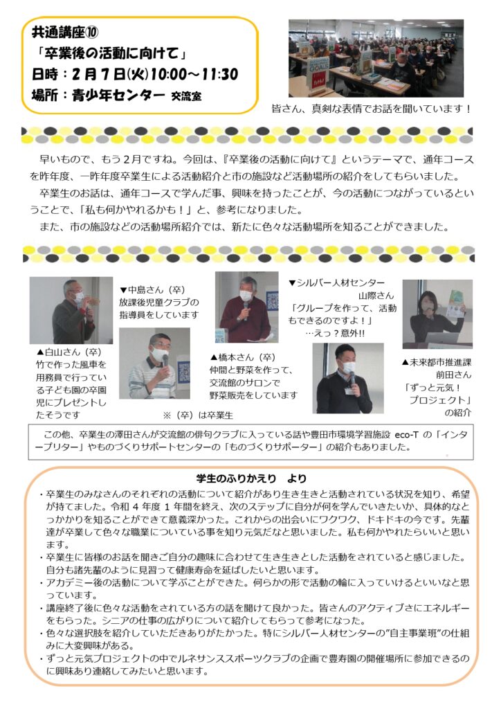 2月の講座風景(通年コース 共通講座「卒業後の活動に向けて」)