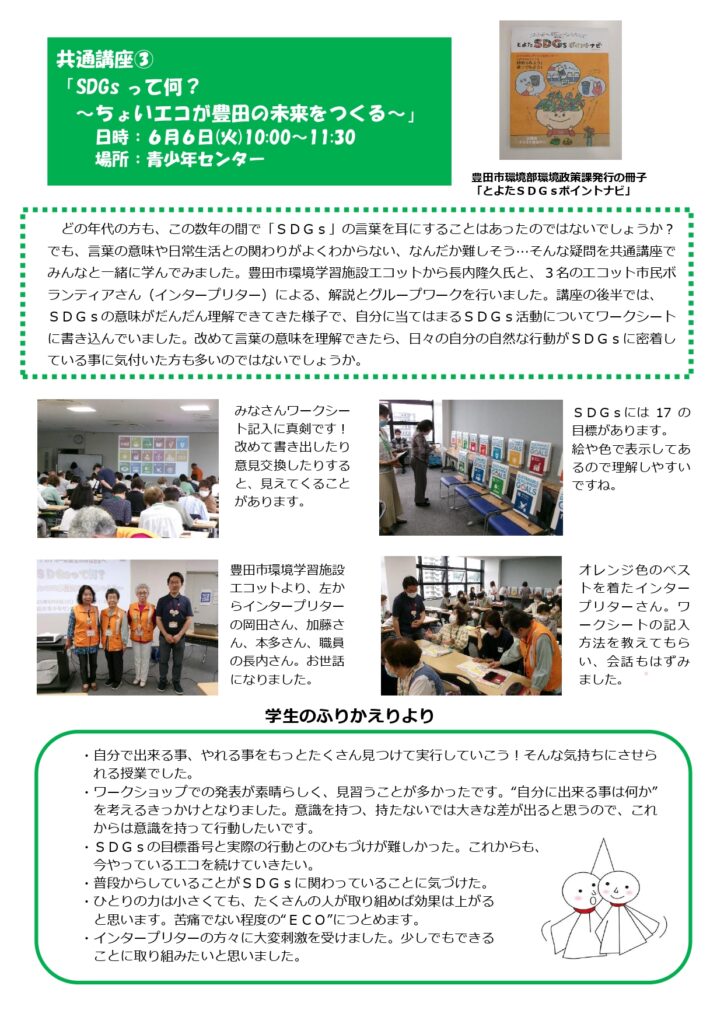 6月の講座風景「SDGsって何?~ちょいエコが豊田の未来をつくる~」