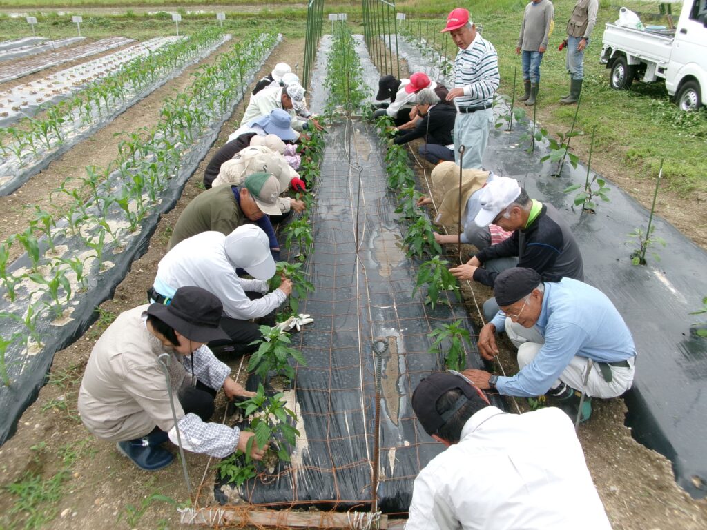 ピーマンの芽掻き・誘引